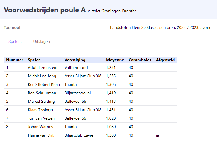 Biljarter Klein komt uit in poule A in deze klasse, waarbij 8 poules zijn ingedeeld. De spelers staan allemaal op papier voor 40 caramboles met een maximum van 50 beurten per wedstrijd.