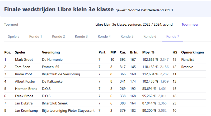 Met een onvervalste jump wist hij 6 matchpunten aan zijn totaal van 2 toe te voegen door alle drie de partijen te winnen. Een fantastische mooie 2e plaats en reservefinalist voor de Nderlandse titelstrijd.