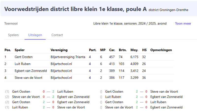 Met het mooie moyenne van 6,175 eindigde Gert als eerste in de poule en als tweede in de ranking districtsfinale.