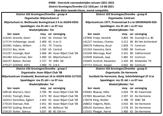 "Hieker" Hobers doet met deze deelname weer een gooi naar een plekje in de districtsfinale, die hij maar al te graag wil spelen. Daarvoor dient hij zich uiteraard wel eerst te plaatsen bij de beste 8 van de 4 groepen in deze klasse, welk moyenne tussen 2,400 en 4,00 ligt.