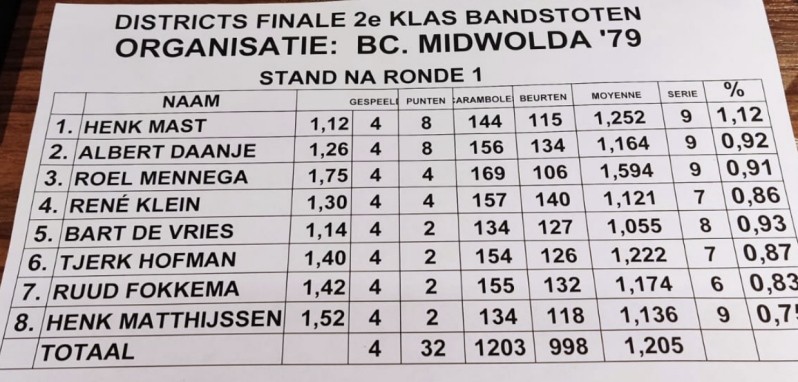 Deze bandstootwedstrijden zien we maar als een toetje van het redelijk verloren gegane seizoen 2021-2022. De KNBB heeft alle voorwedstrijden en finales bandstoten uit het programma gehaald maar het district Groningen-Drenthe heeft gemeend dit toch op districtsniveau te organiseren. Er volgt op deze finales dus geen landelijk kampioenschap.